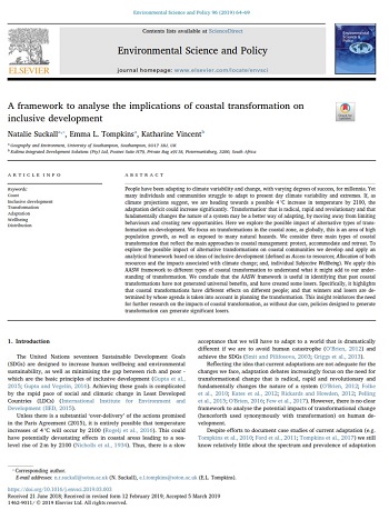 A new paper "A framework to analyse the implications of coastal transformation on inclusive development" has just been made available online in the journal Environmental Science and Policy. The paper, led by Natalie Suckall with co-authors Emma L. Tompkins and Kulima director Dr Katharine Vincent, is an an output of the IDRC and DFID-funded Deltas, Vulnerability and Climate Change: Migration and Adaptation (DECCMA) project. The paper applies an analytical framework based on ideas of inclusive development (defined as Access to resources; Allocation of both resources and the impacts associated with climate change; and, individual Subjective Wellbeing) to three different types of coastal transformation (protect, accommodate, retreat). It highlights that coastal transformations have different effects on different people; and that winners and losers are determined by whose agenda is taken into account in planning the transformation. This insight reinforces the need for further research on the impacts of coastal transformation, as without due care, policies designed to generate transformation can generate significant losers.