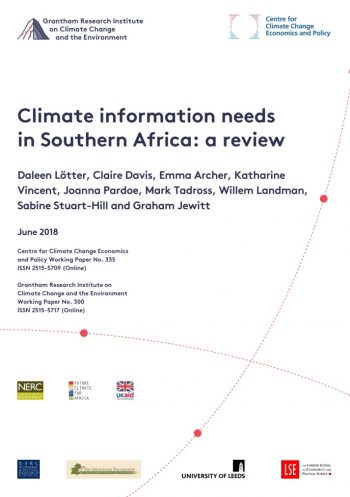 The Centre for Climate Change Economics and Policy at the Grantham Research Institute of Climate Change and the Environment and the University of Leeds has released a new working paper as an output of the UMFULA project. Dr Katharine Vincent is an author of the working paper, entitled "Climate information needs in southern Africa. A review". The paper reviews the state of the landscape of available climate information, barriers to climate information use, and the climate information needs of different sectors in southern Africa. It draws on published literature, documentary evidence and primary research with decision makers in the Southern African Development Community.